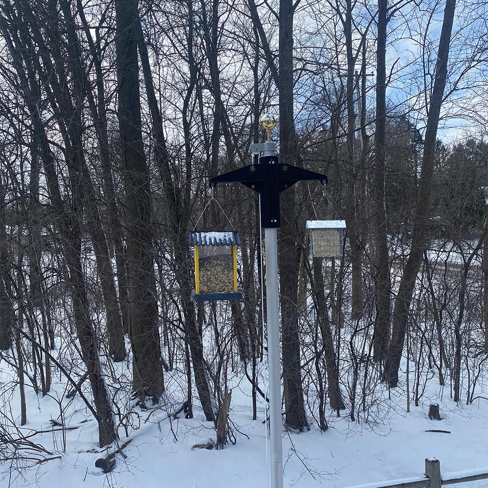 Our EZ FEED Bird Feeder Bracket paired with an all-in-one, self installable flag pole kit. This easy-to-install flag pole kit comes with everything you need to get your bird feed and flags off the ground.